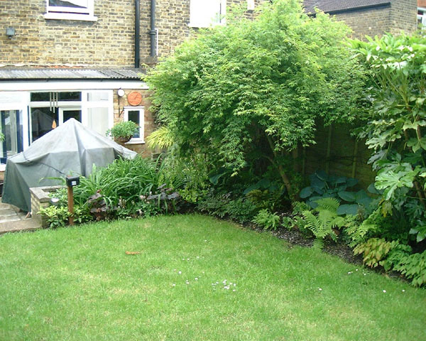 Project: The affordable redesign of a city back gardenThis established garden in London was overgrown, uncoordinated and lacked structure and interest. The owner was so fed up with it that she didn’t really go into it anymore. The shrubs were getting out of hand and made the garden feel gloomy and claustrophobic. Over the course of a few days the garden was transformed by pruning back the trees and shrubs properly to open up the garden, some existing plants were rearranged, some others discarded and more appropriate ones introduced. Definition was added by edging the lawn and creating a complimentary shaped path to the shed and a seating area to catch the morning sun was added. |
